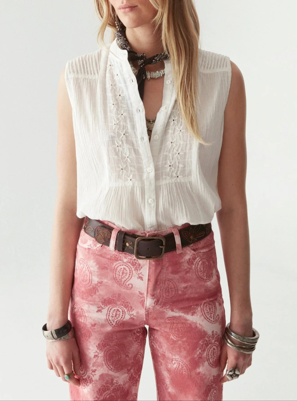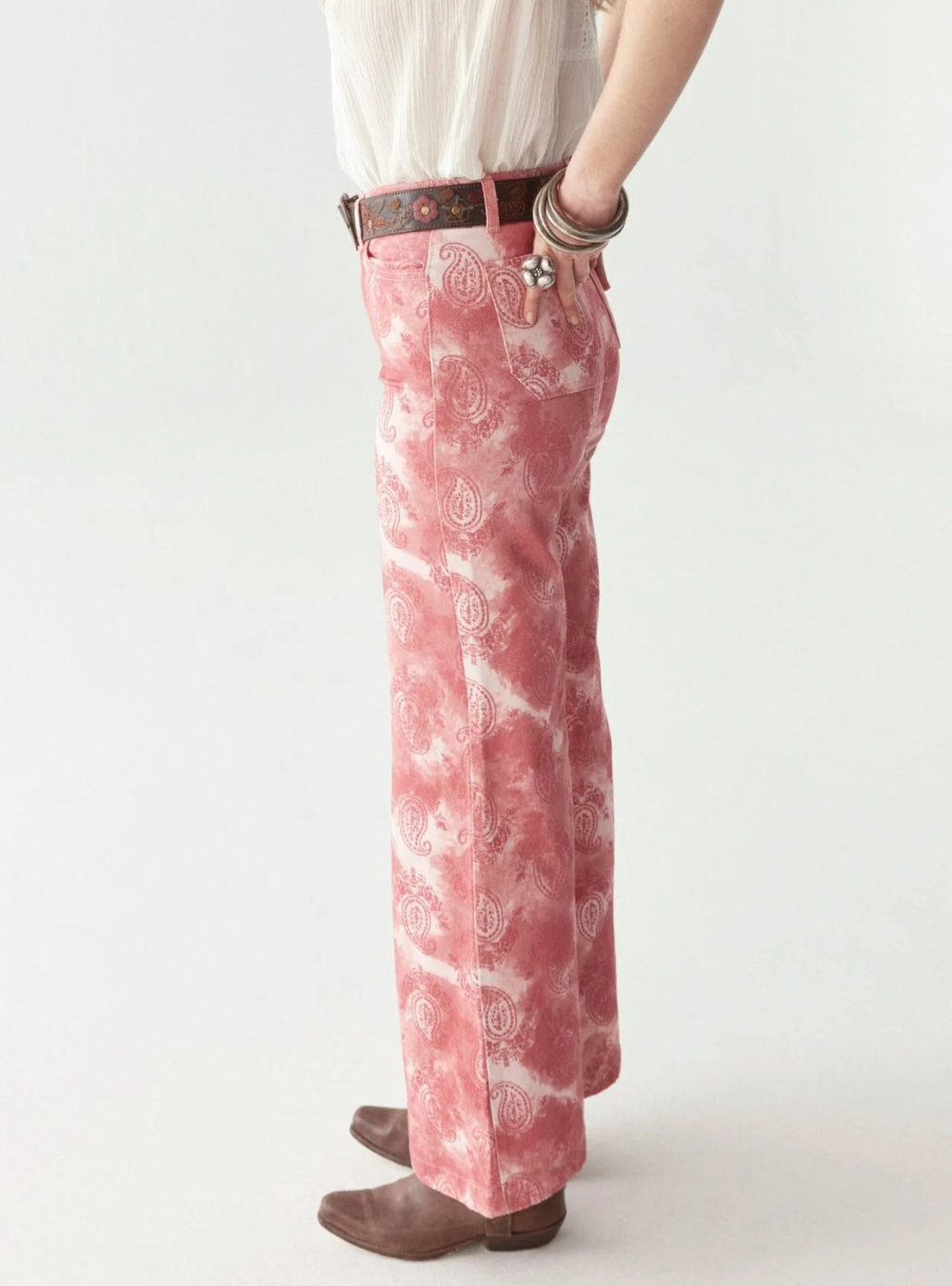 Made for the adventurous souls who live loud and free, the Rita Pant channels vintage rock ‘n’ roll vibes with a boho twist. These wide-leg pants combine soft cotton and a hint of stretch for all-day comfort. Their faded paisley print adds effortless style, while the high waist and relaxed fit make them ideal for barefoot beach strolls or festival dancing in your favorite boots. With classic five-pocket details and a gently worn look, these pants move with you—because feeling free should always come first.