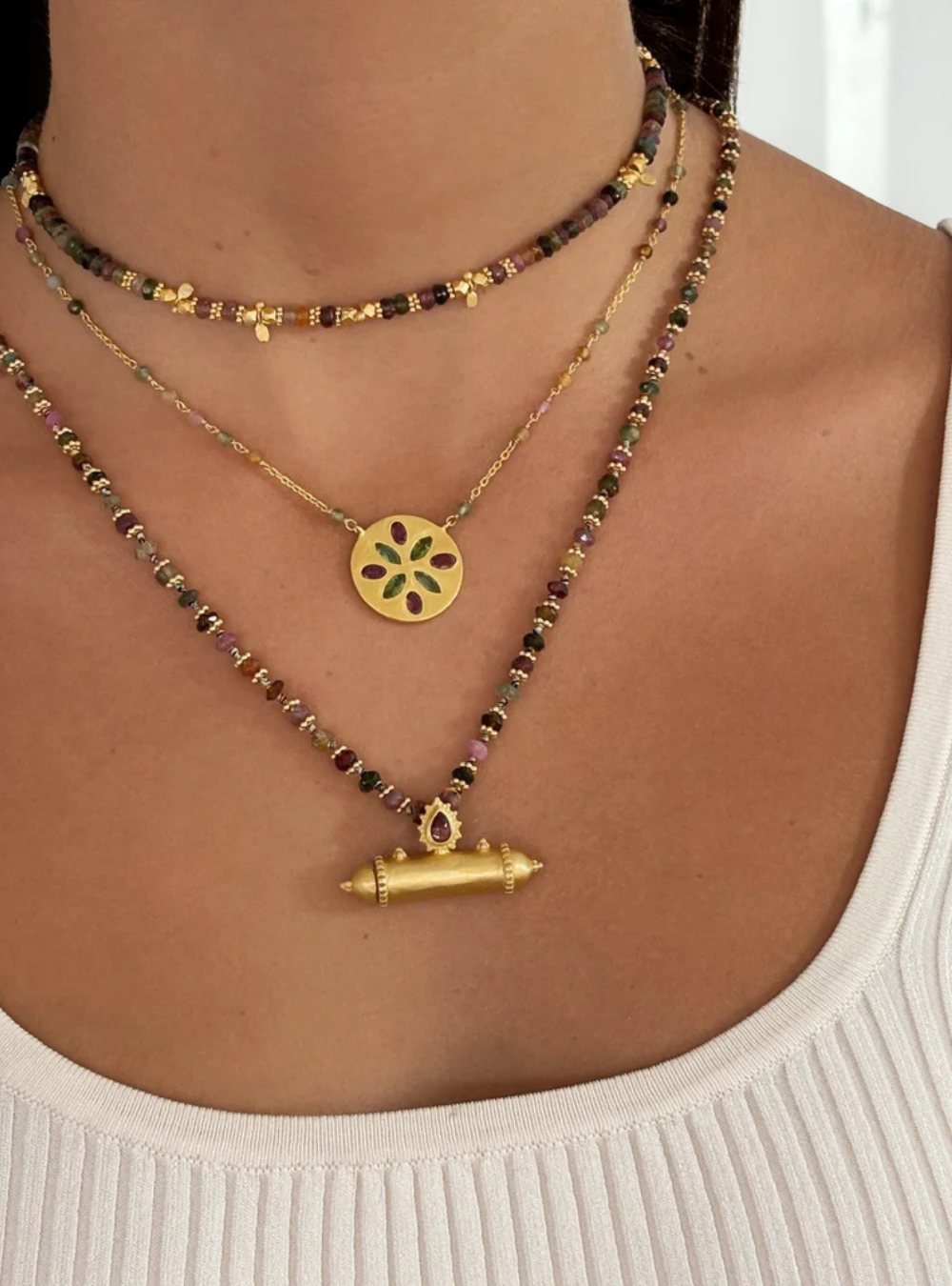 Amrapali Pink & Green Tourmaline flower necklace
