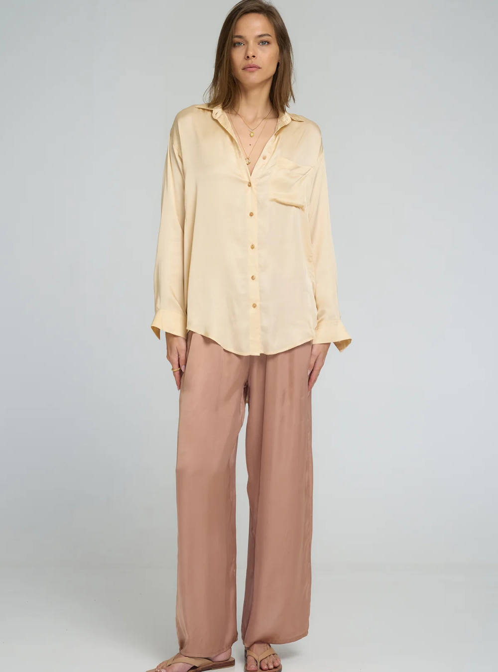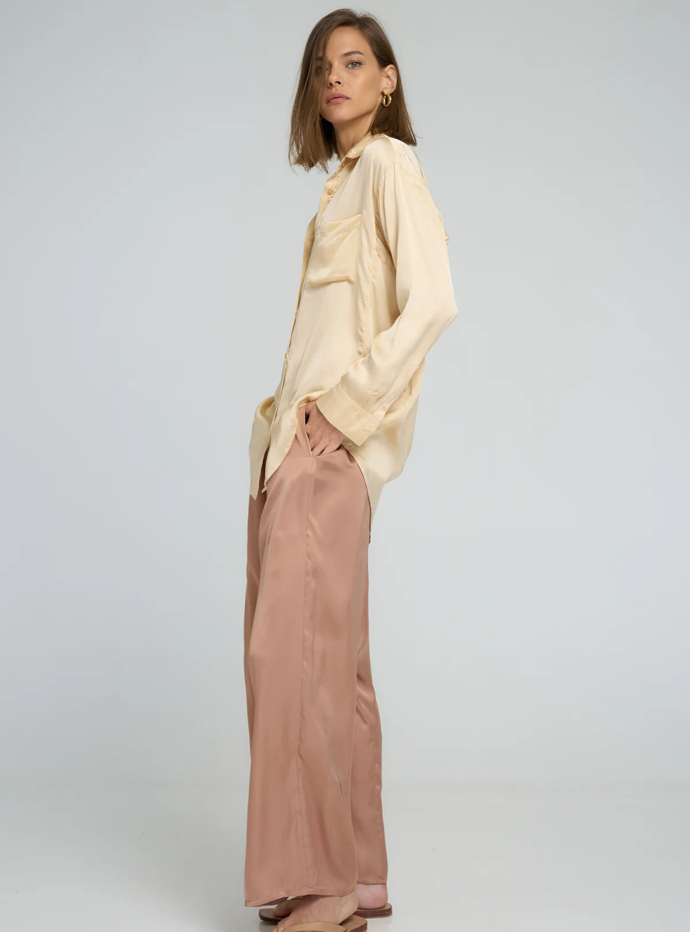 • Elegant wide-leg pants with a relaxed, flowing fit
