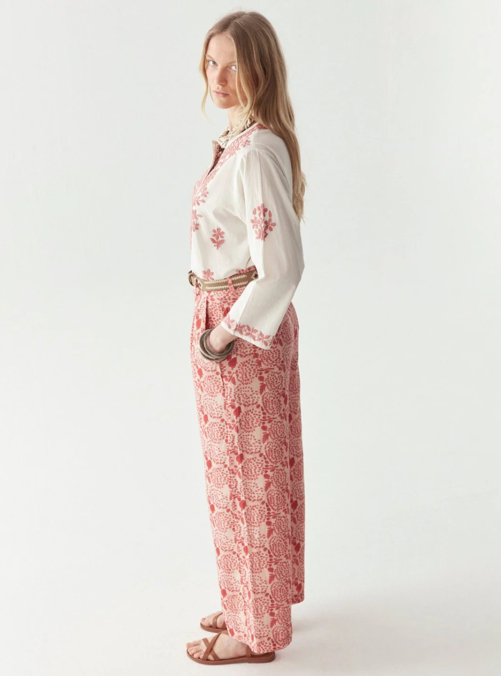 Our Lolo Pants aren’t just any pants. With a high waist and a relaxed fit, they drape effortlessly, defying typical shapes and sizes. The front pleats are crisp and purposeful, giving them a standout edge, while the deep side pockets are perfect for keeping your essentials close. They move with an easy, unhurried rhythm, making you feel like you’re stepping away from the everyday rush. Crafted from soft cotton, these pants flow with natural ease—bold and memorable, much like a classic pink martini.