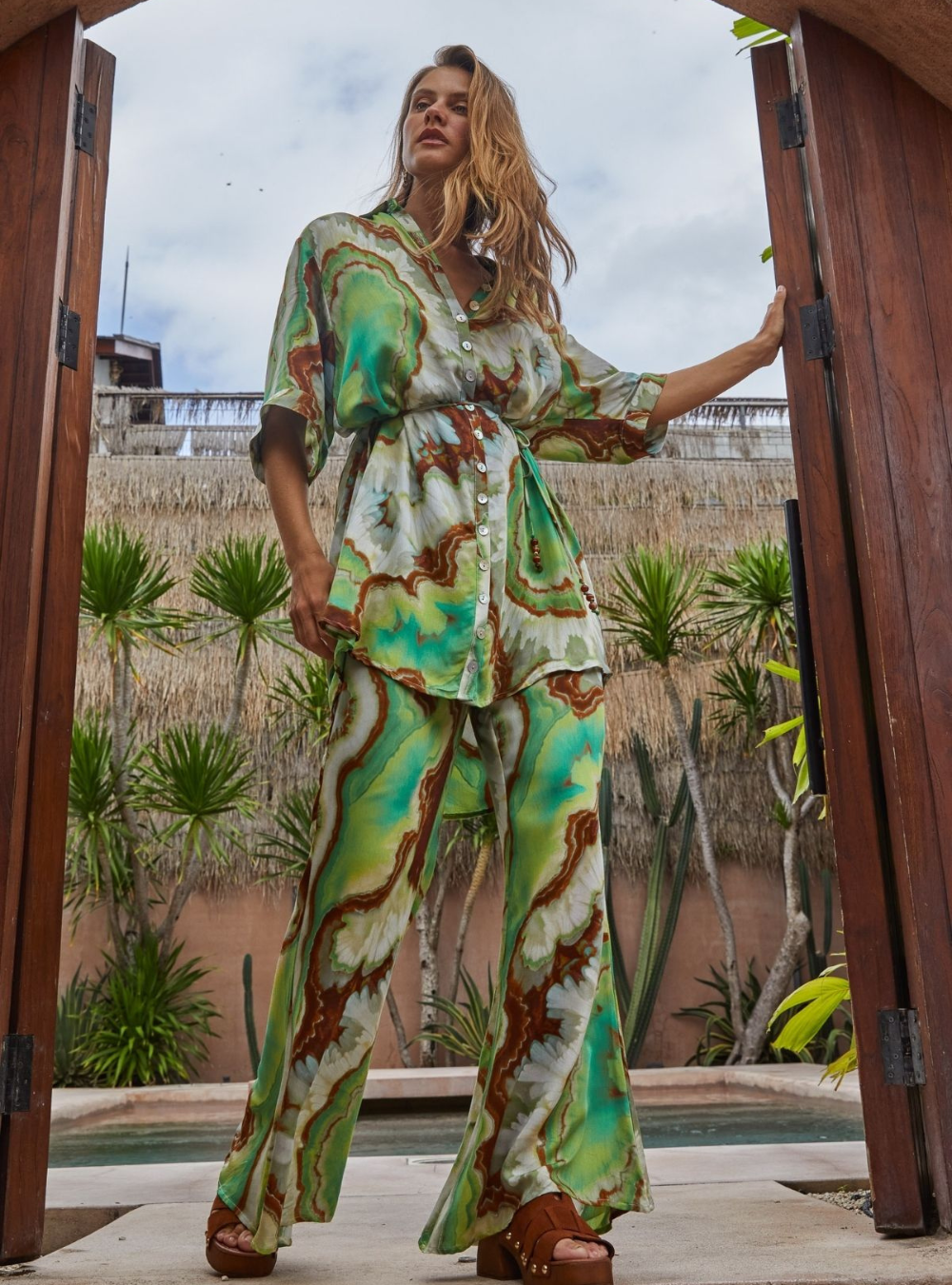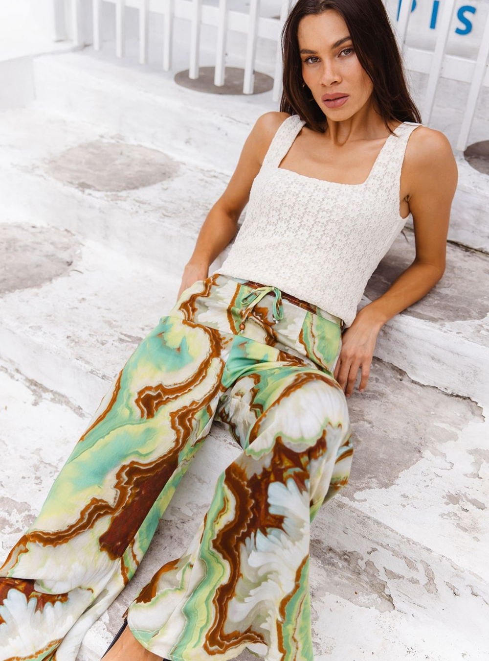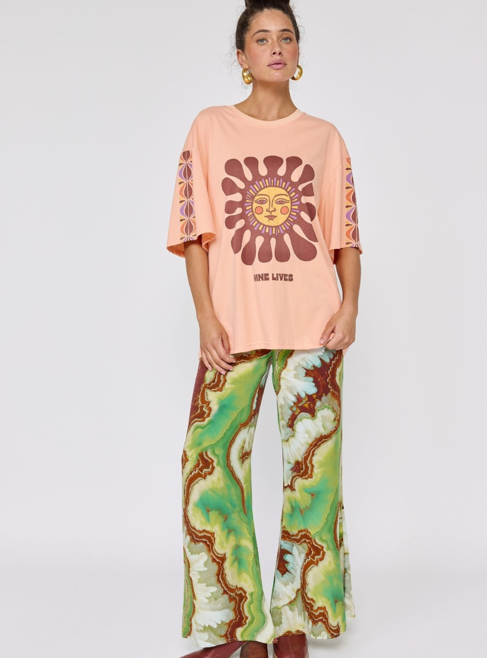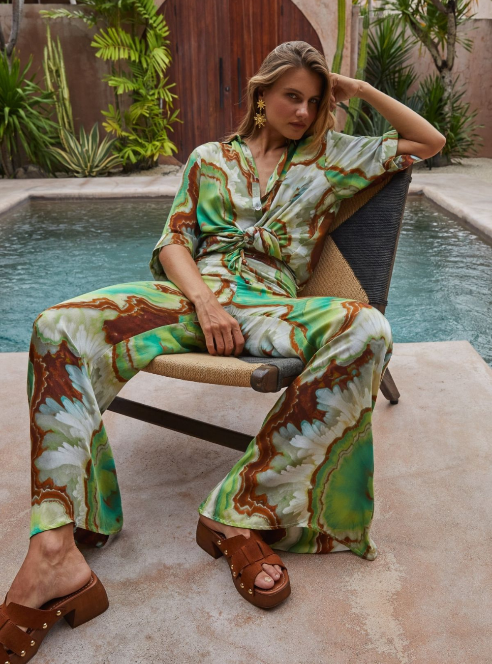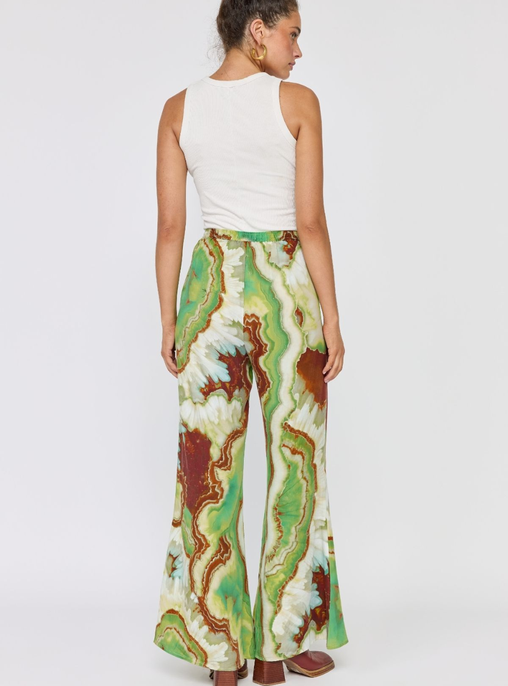Make a statement in our Nadia Flares, designed with a comfortable elasticated drawstring waist for an easy, adjustable fit. Featuring a striking crystal geode photographic print, they bring a modern, artful edge to a relaxed silhouette. Effortless to style and comfortable to wear, these pants are perfect teamed with the matching Lois shirt dress & Erin top.