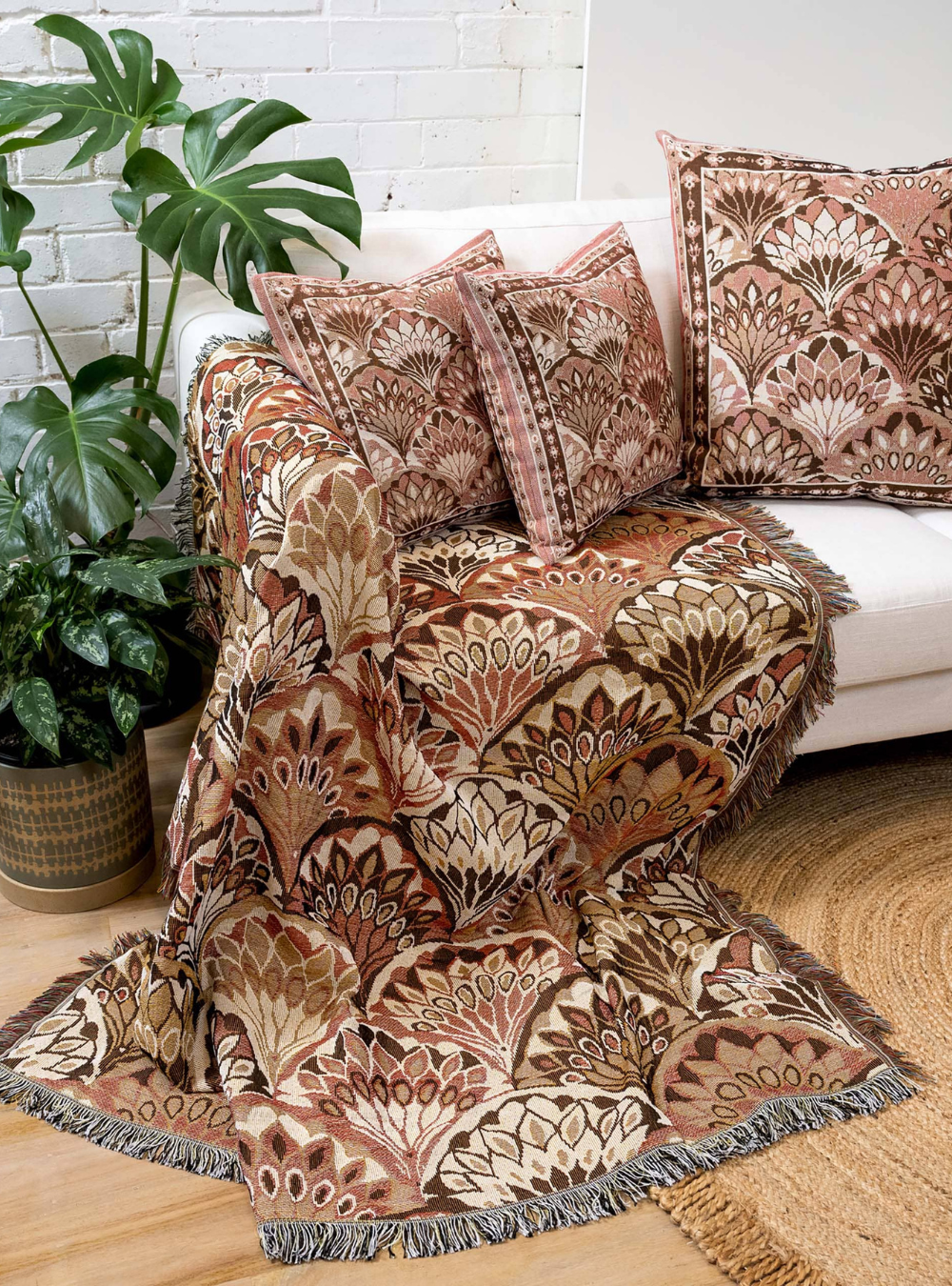 Bring beachside glamour to your next adventure with the 'All My Loving' picnic rug. Featuring an art deco-inspired scallop shell pattern in soft blush and warm brown tones, this borderless design draws from architectural and directional interiors for a romantic, on-trend aesthetic. Perfect for picnics, beach days, or adding a touch of coastal elegance to your home, it's the versatile throw that effortlessly elevates any gathering.