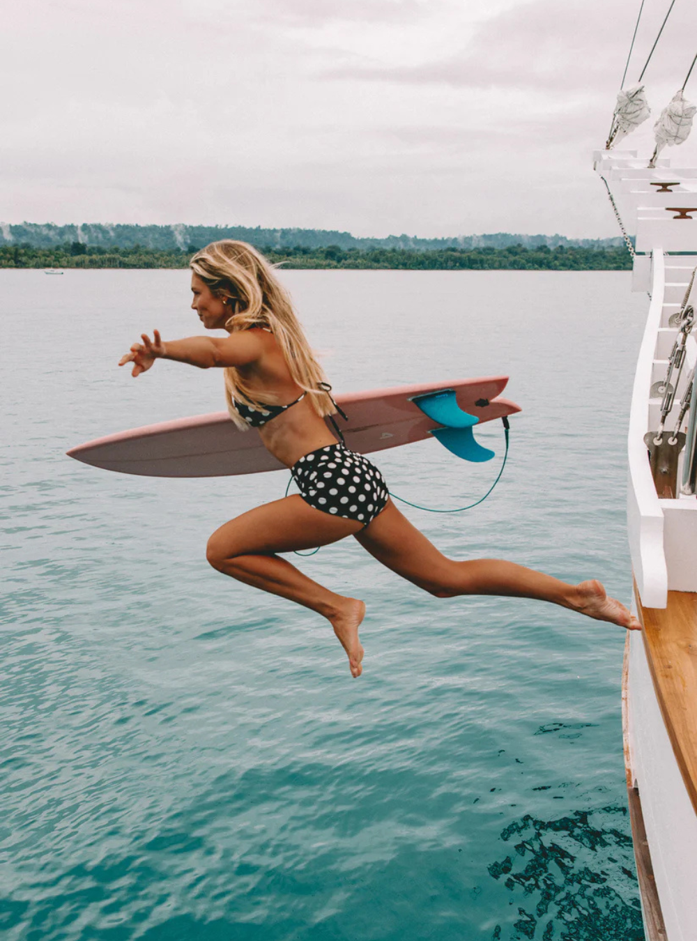 Designed for comfort and confidence, the Seaside Shorty brings vintage charm to modern swimwear. Crafted in our butter-soft, smooth-touch fabrication, this flattering short offers extra coverage with a clean, supportive fit that’s made to move with you. The classic black base with white spots feels effortlessly chic — ideal for surf sessions, seaside strolls, or styled beyond the beach. A versatile summer staple that blends form, function, and fun.