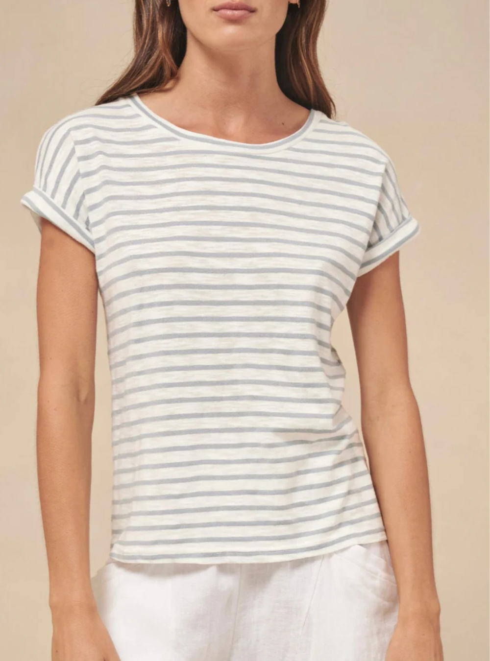 The Little Lies Oscar Tee in Cloud Stripe is a great layering essential for your wardrobe. Featuring a round neckline and soft fabric, it pairs effortlessly with denim. The relaxed fit ensures all-day comfort with a casual vibe.