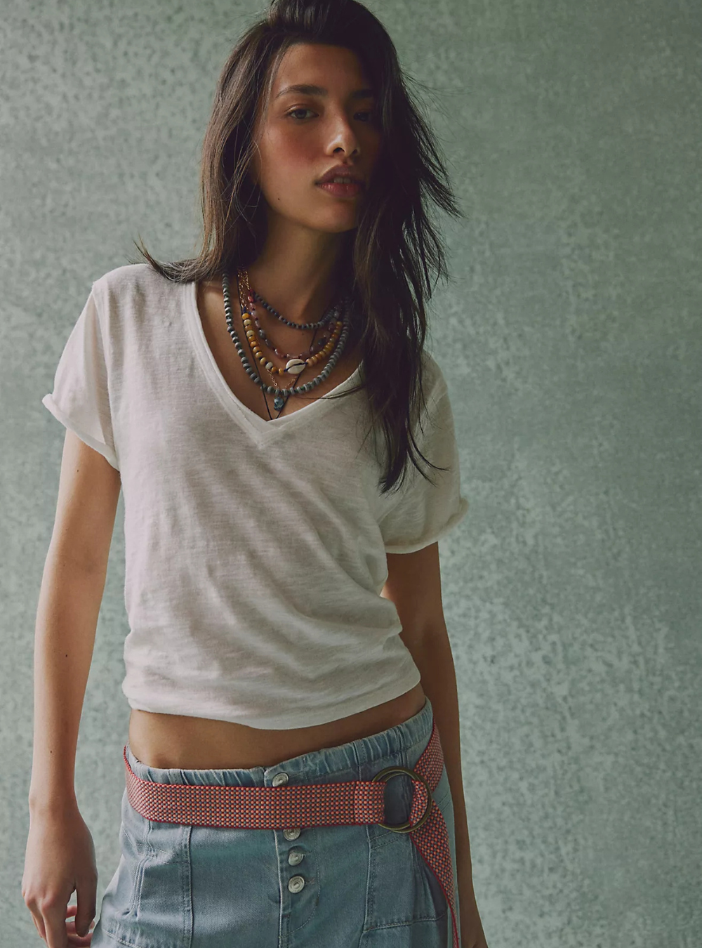 Perfect for layering, this short-sleeved tee from We The Free is featured in a boxy cut and a V-neckline for endless outfitting potential.